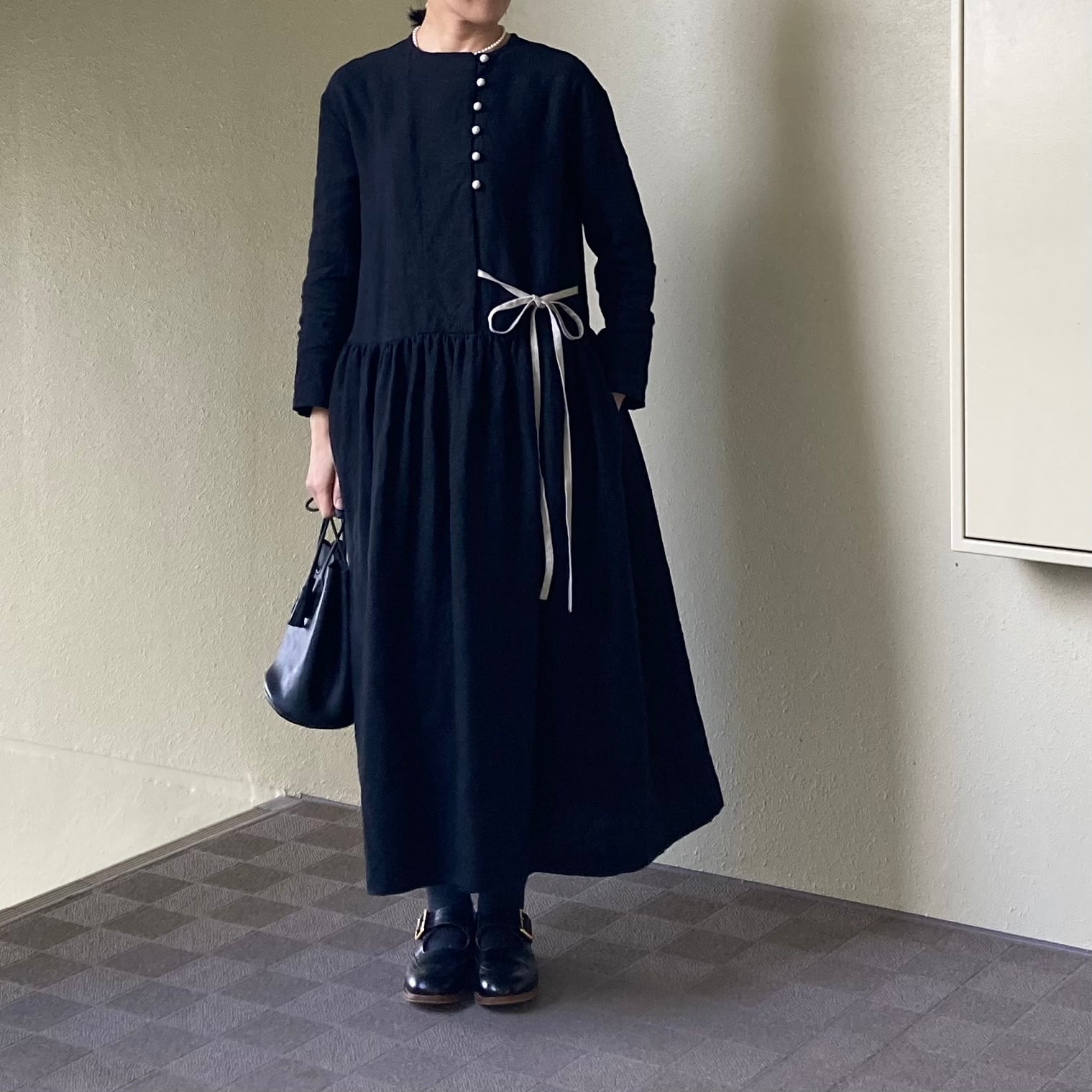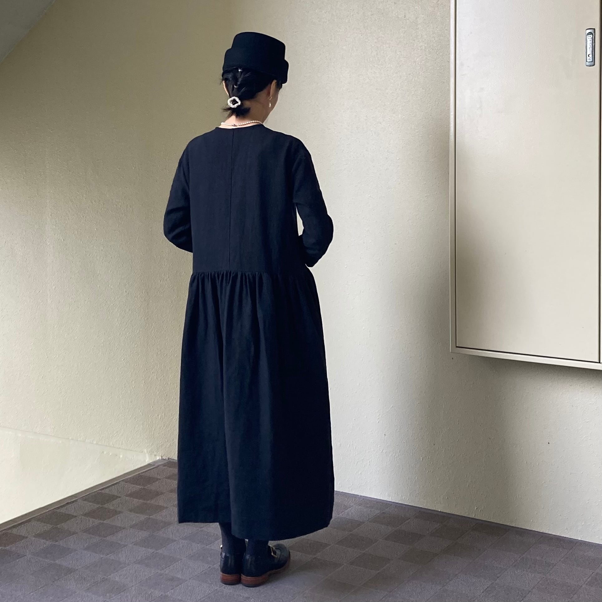 blackリネン マーブルワンピース